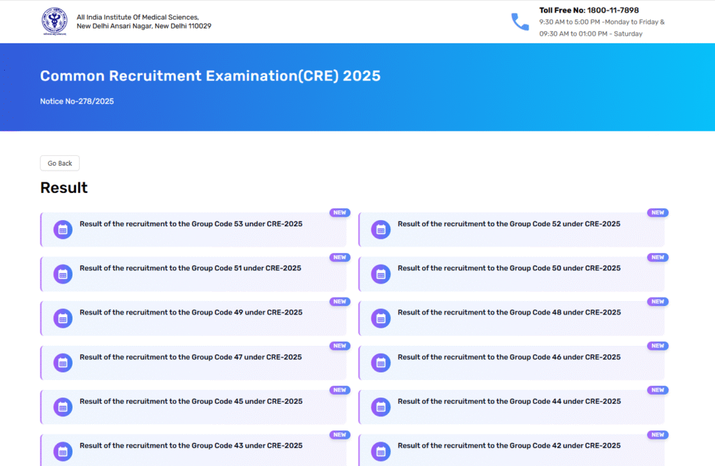 The All India Institute of Medical Sciences (AIIMS), New Delhi, has officially announced the AIIMS CRE Result 2025. The AIIMS exam result 2025 declared brings relief and excitement to thousands of candidates who participated in this prestigious examination. The AIIMS Common Recruitment Examination result 2025 is now available for download on the official portal, marking a crucial milestone in the recruitment process.