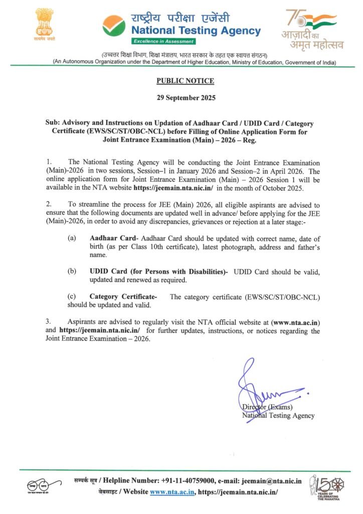 The NTA’s proactive approach through this advisory ensures that JEE Main 2026 aspirants can prepare thoroughly for their applications. Candidates must prioritize updating their JEE Main 2026 eligibility documents immediately to avoid complications when the JEE Main 2026 application form opens in October 2025.