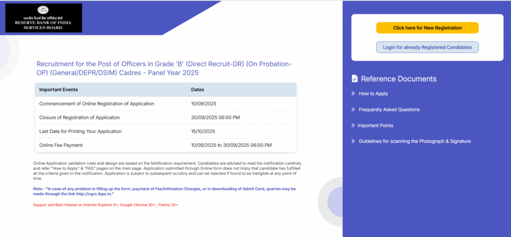 - RBI Grade B Registration Last Date: 30 September 2025 (until 6:00 PM)