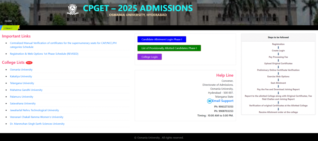 After accessing your Osmania University CPGET 2025 result, candidates must complete these crucial steps according to Osmania University admissions 2025 guidelines: