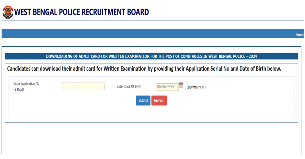 Search for the “Recruitment to the post of Constable in West Bengal Police – 2024” section and select the ‘Download e-admit card’ option.